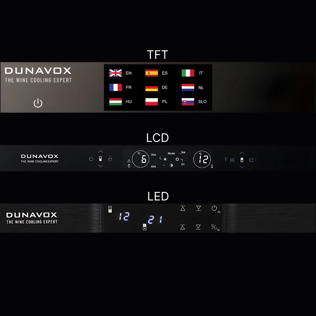 Choose between LED, LCD or full-colour TFT touch displays depending on model. Clear temperature visibility, intuitive controls and elegant design integrated into the door.